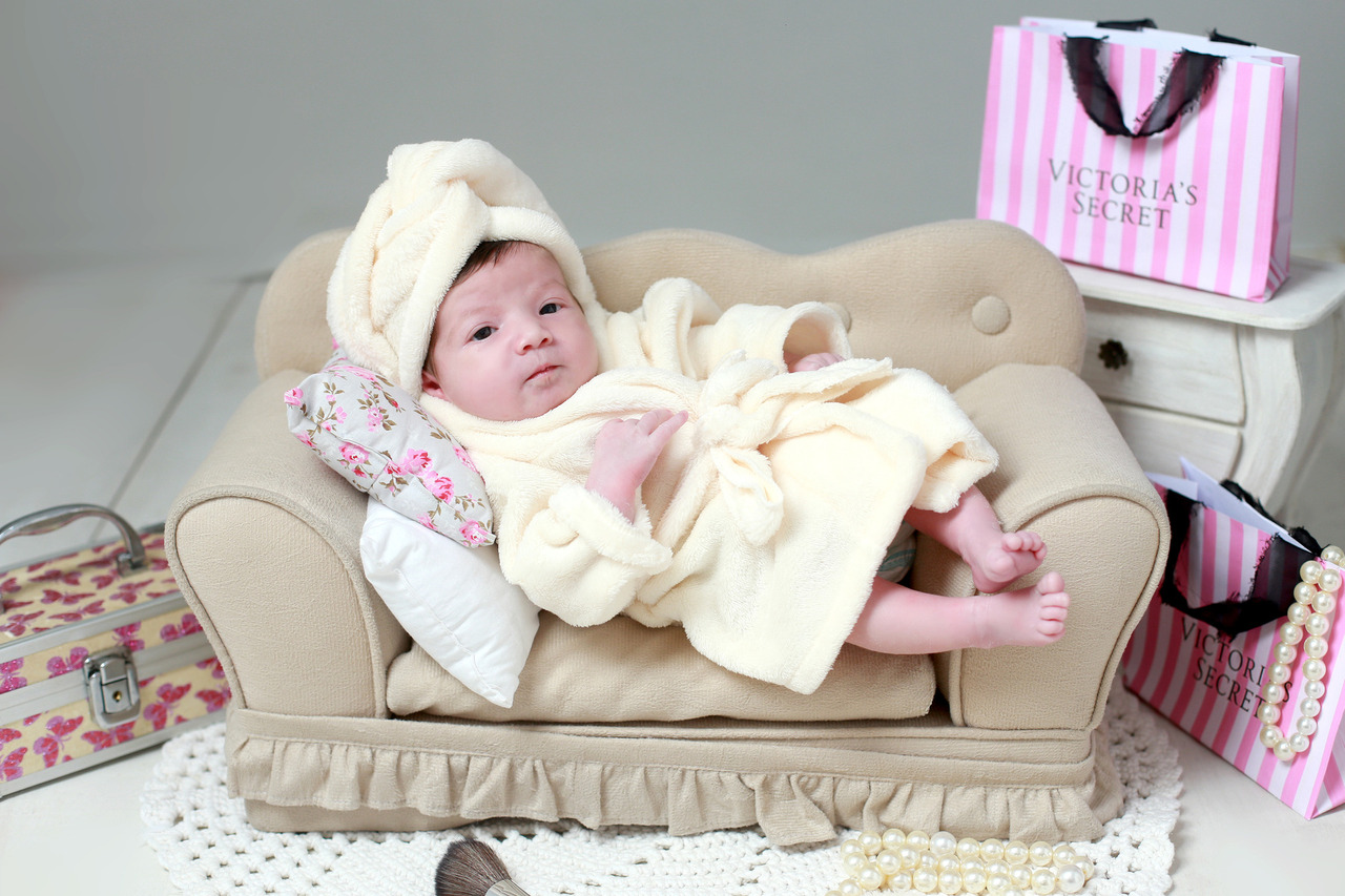 Uma das tendências que as mamães mais amam é trazer um toque de criatividade e humor para as fotos. Para a Maria Luiza, montamos um "Mini Diva" . Com direito a roupão felpudo, toalha na cabeça e um cenário rico em detalhes, as fotos são delicadas e divertidas.